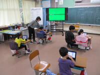 4年の理科では、人の体のつくりをタブレットで調べています。体の中の様子は実際に見ることができません。それぞれが興味を持ったことについて調べて、自分の画面でゆっくり確認できます。どの子も集中しているので教室内がとても静かです。