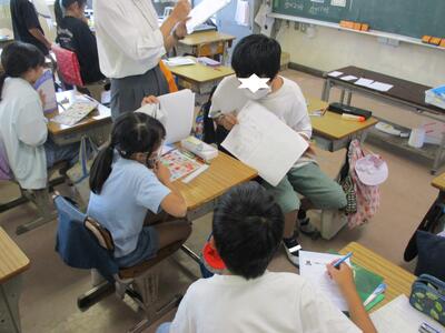 3年生の図書の時間です。思い思いの本を選んで読んでいます。友だちとの交流もありますが、実に静かです。国語の「わすれられないおくりもの」で学習したアナグマさんへの手紙も図書室に置かれています。