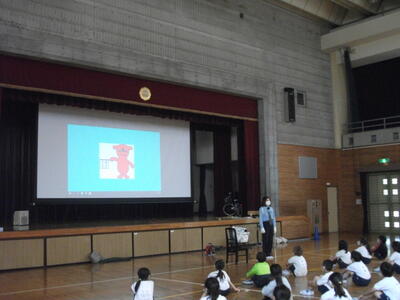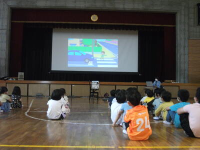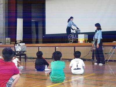 1.3年生は交通安全教室を実施しました。1年生は、安全な歩行の仕方、3年生は安全な自転車の乗り方について市川市交通計画課のみなさまに教えていただきました。