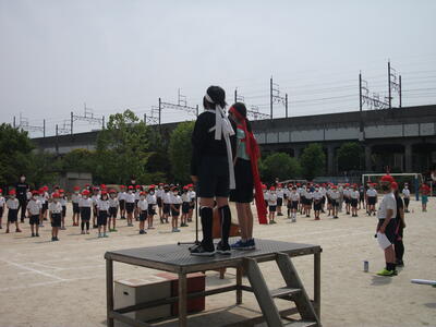 運動会に向けて、今日から応援団の朝練習も始まりました。まだまだ感染防止対策は必要です。以前のようにみんなで声を出して…というわけにはいきません(応援団は声を出さずに…は無理ですが)。でも、運動会を盛り上げるためにいろいろな工夫をしていきます。学年だよりでお知らせしたペットボトルのご準備をお願いします。