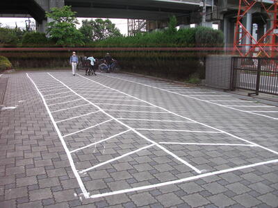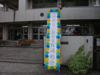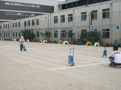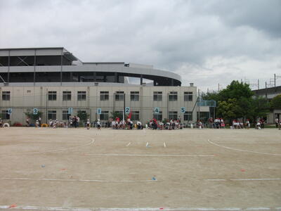 看板を設置し、PTAの方は駐輪場のラインをきれいに引いて下さり、万全の準備をして、運動会が始まりました。