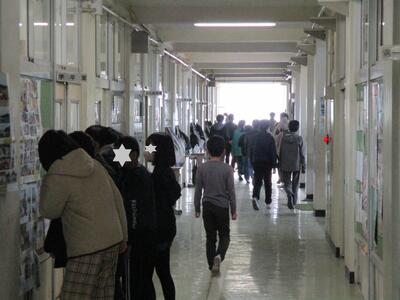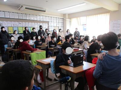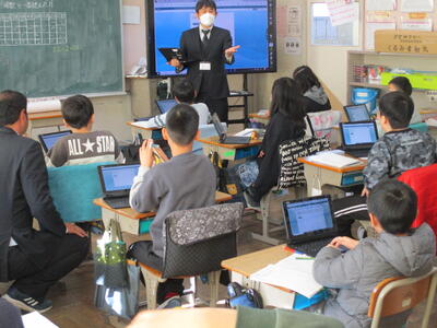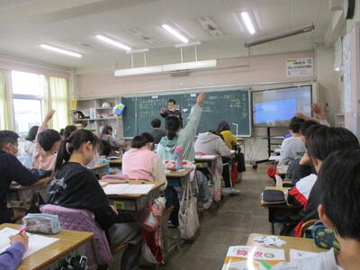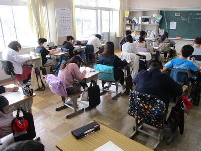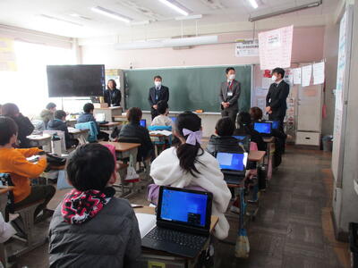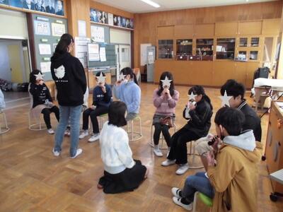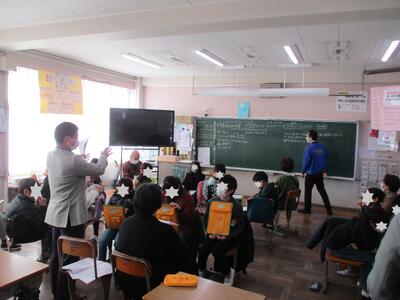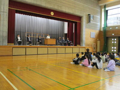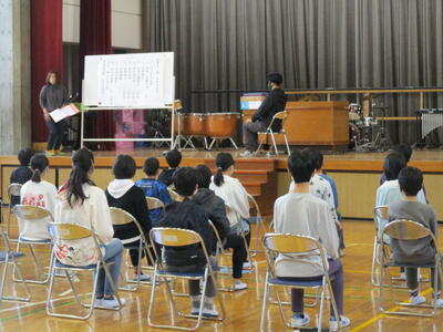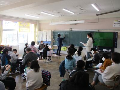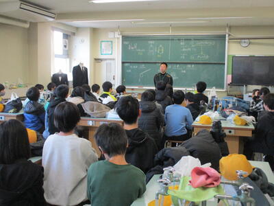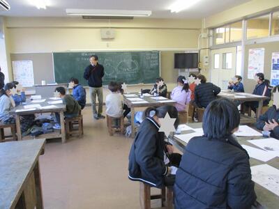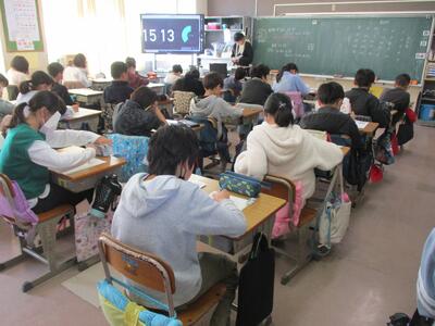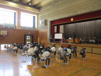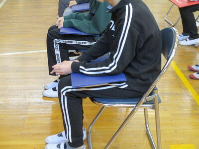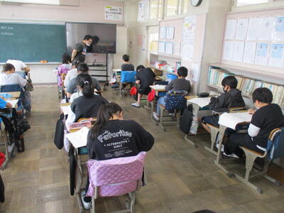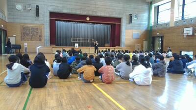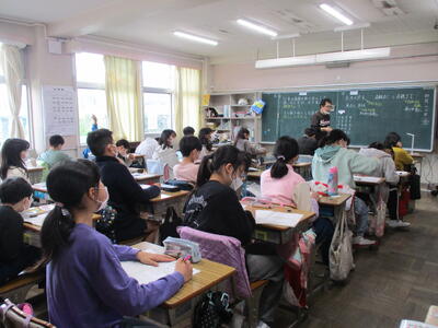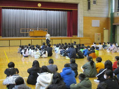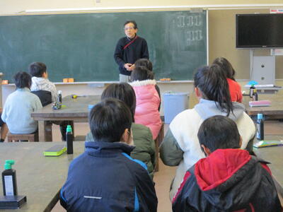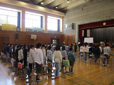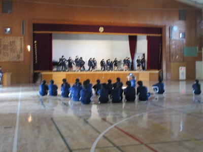 たっぷり50分の授業をしていただいたあとは校内を見学しました。この時間は、3年生を送る会の練習が主でした。見学後、教務主任の先生から「出し物は先生たちから言われるのではなく、自分たちで〇〇をしよう、と決めていくのです。」とのお話がありました。小学校生活もあとわずかですが、自主性を高めていきたいと思います。高谷中学校には貴重な機会を与えていただき、本当に感謝です。ありがとうございました。