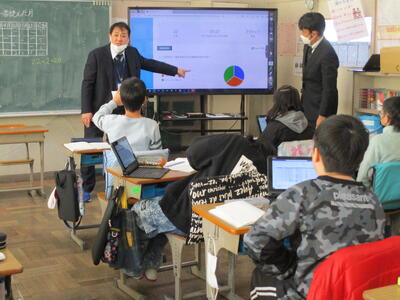 4年生は、市川市教育センターの方の出前授業受けました。算数の「表」を書いたり整理したりする学習の際にタブレットのアンケート機能や集約機能を使うことができるというものです。4年生のみんなも初体験です。そのため、アンケートに何回も答えてしまうというアクシデントも発生しました…。しかし、「学級会や係のアンケートに使える!」という声も聞こえてきました。新しい使い方をすぐに覚えてしまう子どもたちには驚かされます(゚д゚)!