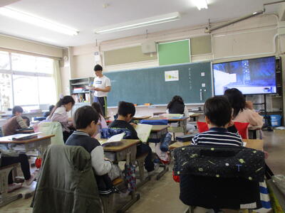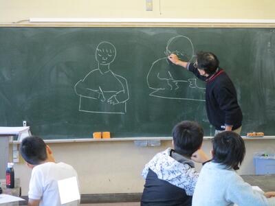 今日は、4年生の図工の授業を、高谷中学校の美術の先生が行いました。