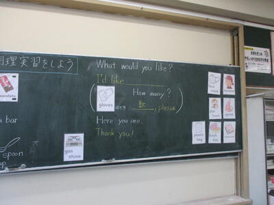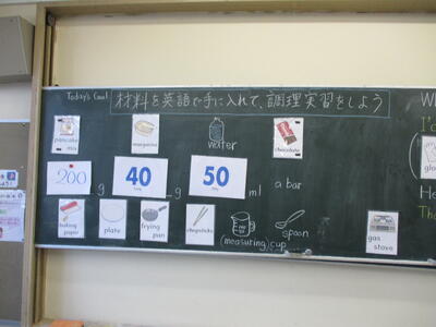 今日は5年生の英語の授業の様子です。「What would you like?(何が欲しいですか?)」「I would like 〇〇.(〇〇がほしいです)」「How many?(いくつ?)」「◇◇(数)please.」 というやりとりをしながらスコーンの材料を手に入れ、調理します。外国語指導員、担任、少人数指導員の3人がかりで対応をしました。写真を撮った時には、すでに材料を手に入れて調理に入っていました( ;∀;)。残念ながら、調理中のグループの会話は英語ではありませんでした。でも、家庭科のようですが英語です。