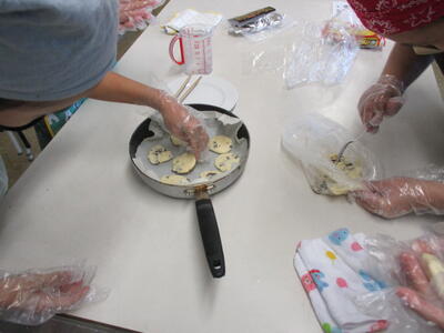 子どもたちは、グループのみんなで協力して、とても楽しそうに活動していました。出来上がりを試食させていただきました。チョコもしっかり溶けて、おいしく出来上がっていました。ごちそうさまでした。