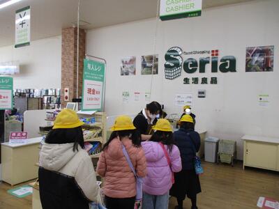 今日は、さくら学級2組のみんなは、これから作るキーホルダーの部品をセリアまで買いに行きました。これも実習の一つです。どんなものを作りたいか、しっかりと見通しを持ち、材料を選びました。行きも帰りもしっかり並んで移動できました。セリアでも実にお行儀よく買い物をすることができました。移動時間を含めても30分くらいでした。とてもよくできた買い物実習でした。