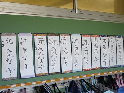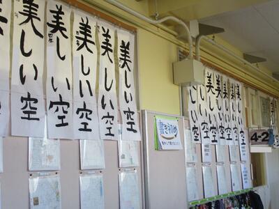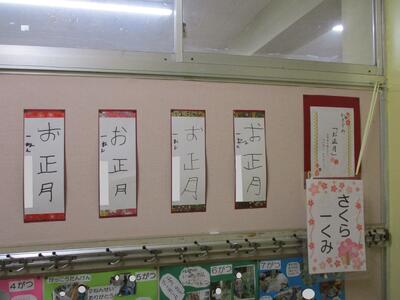 1月17日~1月24日の期間、書き初めで書いた作品を教室前に展示しています。(さくら2組のみなさんの作品は、該当学年教室前に展示してあります)お忙しいとは思いますが、子どもたちの学習の成果をご覧ください。
