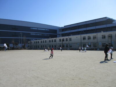 火曜日は、そうじがなく、昼休みが35分間のロング昼休みです。外遊びを奨励し、子どもたちの体力向上を目的としています。今日は天気が良く、絶好の外遊び日和です。