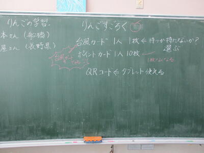 4年生が、長印船橋青果の方と「リンゴ」について学習しました。リンゴすごろくを楽しみながら、作られ方について学習します。途中QRコードを使って関係することを調べることもできます。3年の「梨」の学習でも、農家の方が丹精込めて作っていることを学習しました。リンゴも同じです。自然との戦いなので、天災や害獣によってダメになってしまうこともよくわかりました。プレゼントもいただきました。ありがとうございました。今日の学習で、リンゴがさらに好きになった子も多いかもしれません。