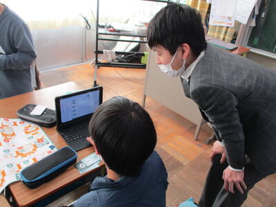 2組が2校時に実施。それを受けて、教育センターの方が3校時にデータの手直しを図り、1組は4校時に実施しました。そのため、若干指導内容が変更になっています。