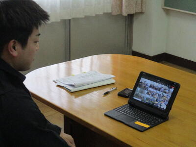 健康委員会が、全校に健康な生活を啓発するための動画撮影をしています。台本を見ながら、撮影も自分たちで行っています。撮影後に監督(委員長)を中心に映像確認しているあたり、本格的です。