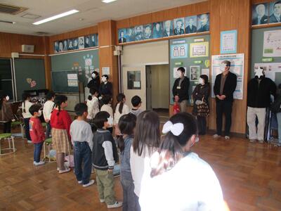 修了式に続いて、今年度末で二俣小を離れることになる10名の先生方とのお別れの式が行われました。長い先生は5年、短い先生は1年の勤務となりましたが、子どもたちにたくさん関わっていただきました。新天地でのご活躍をお祈りしています。ありがとうございました。異動先につきましては、メールにて送信いたしましたのでご確認ください。