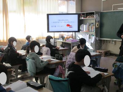 架空の事例をもとに、学校内で起こりうる人間関係のトラブルを話し合う授業を行いました。グループごとに意見を交流し、交流会で得た気づきや価値観についてクラスで共有していきます。少人数での話し合いだったので、どの子も活発に意見を話していました。今日の経験をこれからの学校生活に生かしていきたいと思います。