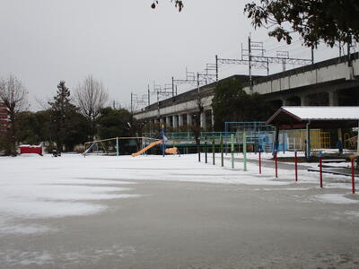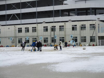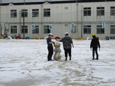 今日は、昨日からの雪の影響も少なく、通常日課で行うことができました。とはいえ、雪はたくさん積もっています。登校中にけがをしたり事故にあったりする子がいなくてほっとしています。「校庭で遊ぶの楽しみ!」「雪が降ってうれしい」と言いながら登校してきた子も多くいました。今回の雪は水分が多く重いので雪合戦は無理です。それでも子どもたちは久しぶりの雪に大喜びでした。雨ということもあり、昼休みになるころには校庭の雪はどこへやら…。雪だるまの跡だけが残されています。