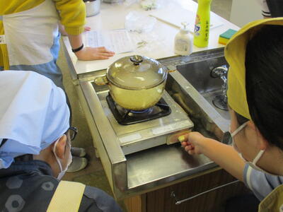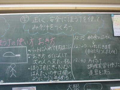 今日は、5年生が「ごはんとみそ汁」の調理実習を行いました。日常よく口にする2品です。ご飯は、ガラス鍋で炊きます。お米が炊き上がっていくまでの過程がしっかり観察できます。みそ汁は煮干しでだしを取ります。包丁さばきも手慣れた子もそうでない子もいますが、何とかねぎと大根を切りました。自分たちで作ったごはんとみそ汁、格別の味ですよね。
