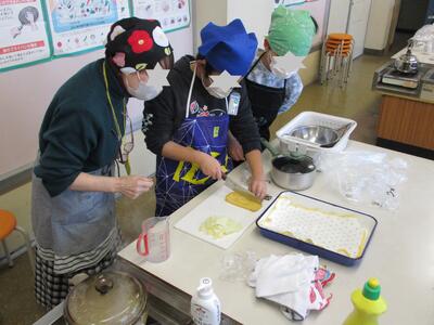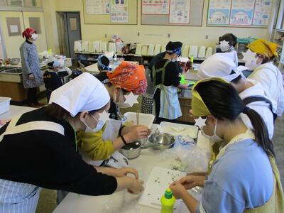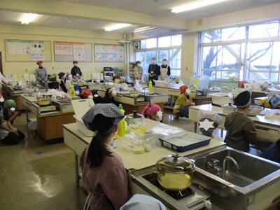 たくさんの地域ボランティアの方々にご支援いただきました。おかげさまで無事に調理実習を終えることができました。ありがとうございました。