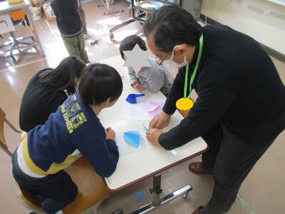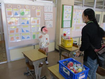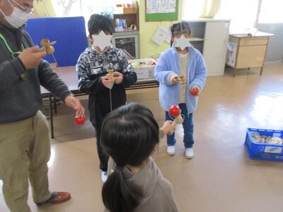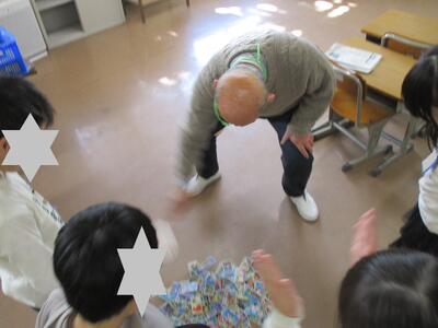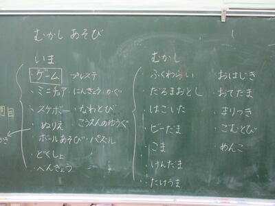 今日は1年生が、地域の遊びの名人をお招きして、昔遊びをしました。ここ何年かは、コロナ禍で実施できず、久しぶりの開催となりました。名人を控室にお迎えに行き、「お願いします」とごあいさつをして各教室へご案内しました。チャレンジしてみますが、なかなか上手にはいきません。名人に教えてもらったことを生かして、たくさん練習して、上手になってくださいね。