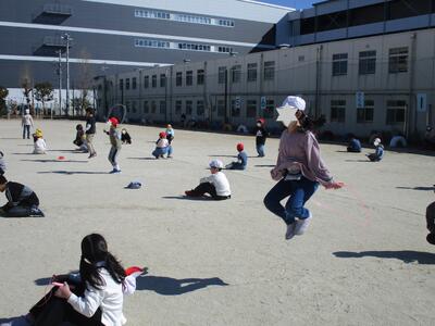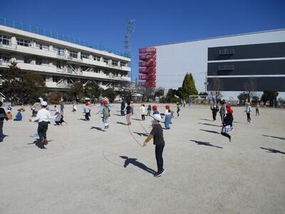 ロング昼休みを利用して、「二俣チャレンジカップ高学年の部」が行われました。4年生は2分、5・6年生は3分の連続跳びにチャレンジです。体育でのなわとびは、寒い時期に体を暖めるのに行うことが多いですが、今日は2月とは思えないほど気温が上がり、汗を流している子も多くいました。どの学年もクリアした子が何人もいました。3分はすごいですね~。後日賞状がもらえます。たくさん跳んでくださいね。担任の先生方もチャレンジしていました。元気です!二俣小。