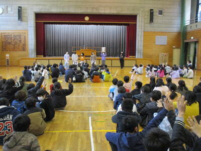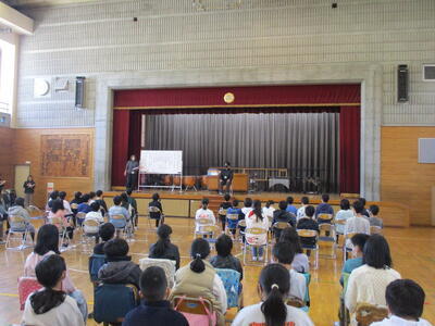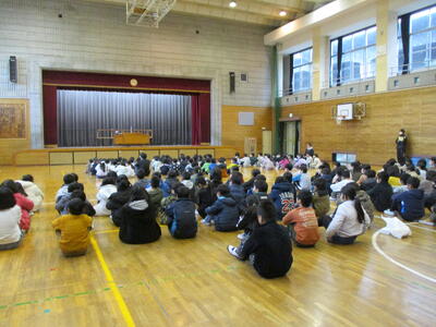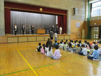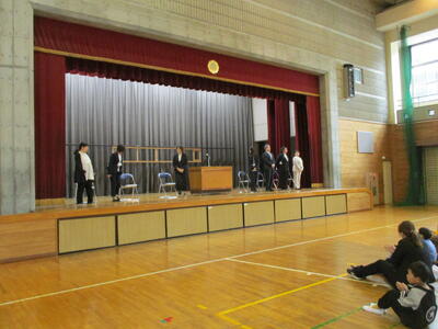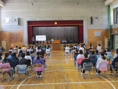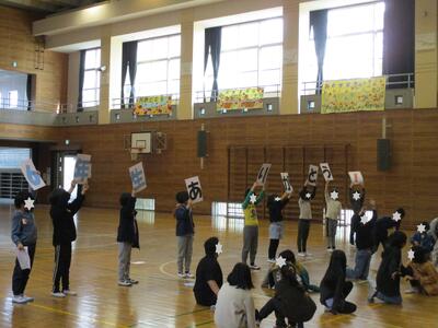 今日は、全校での6年生を送る会が行われました。どの学年も6年生への感謝と、お祝いの気持ちを伝えるために今日まで一生懸命に練習をしてきました。どの学年も笑いを交えながら立派な発表でした。感謝とお祝いがしっかり伝わったことと思います。