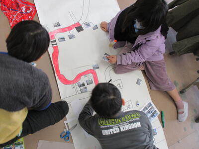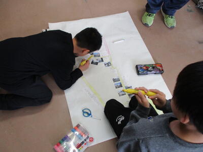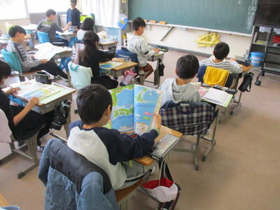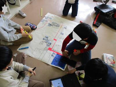 3年生が「わが町未来探究科」の学習で、通学路の危険な場所を地図にまとめています。自分たちの目で見てきたことを、写真も使って詳しくまとめています。完成したら、自分たちの安全はもちろん全校のみんなにも安全に登校したり生活したりできるように広めていってくださいね。