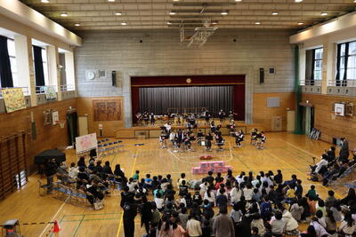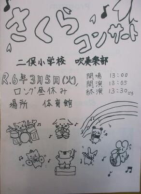 火曜日、ロング昼休みの時間に、吹奏楽部の「さくらコンサート」が開催されました。卒業する6年生のお別れ演奏会にもなります。吹奏楽部全体での演奏、6年生だけでの演奏などいろいろな曲で楽しませてくれました。見ている児童も、保護者のみなさまも大きな拍手を送ってくれました。6年生の部員のみなさん、お疲れさまでした。