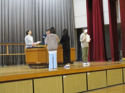 今年度最後の全校朝会が行われました。全校みんなが集まるのは今日が最後。全校で歌う校歌も最後になりました。教頭先生から、最近あったちょっといい話を教えていただきました。そのあとに千葉県運動能力証・市川市運動能力証・地域野球の表彰を行いました。3月の生活目標「感謝の気持ちを伝えよう」についての話では、5年生の協力のもと、お世話になっている人を考えました。「ありがとう」大切な言葉です。毎日いろいろな場面で言葉にしていけるといいです。