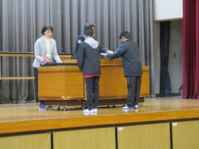令和5年度も最終日となりました。修了式では、5年生の代表児童が修了証書をいただきました。全児童には、教室で担任から手渡されます。一年間の頑張った成果ですね。校長先生から「この春休みは、新年度の目標をたてるお休みにしてください」との話がありました。生徒指導の先生からは、春休みの過ごし方についてお話がありました。春休みは短いですが、有意義なお休みにしてください。