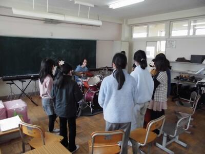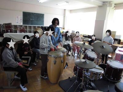 5日(火)に最後の「さくらコンサート」を終えた吹奏楽部が、7日、8日の2日間体験会を実施しました。3年生から5年生の楽器に興味を持った子がたくさん参加しました。木管楽器、金管楽器、打楽器に触れました。講師の先生、そして大役を終えた6年生も優しく教えてくれます。楽器の楽しさを感じることができたかな?