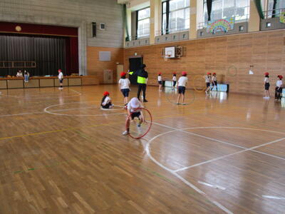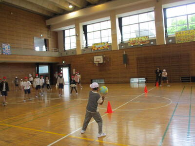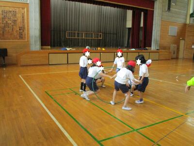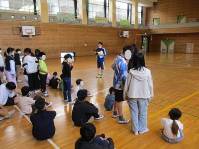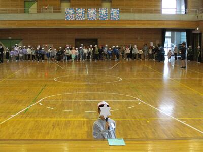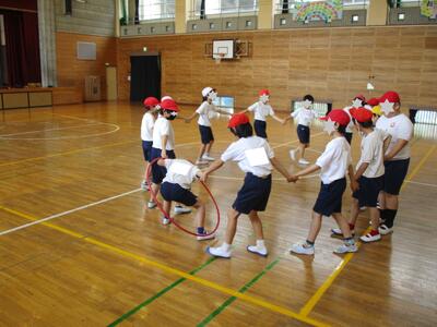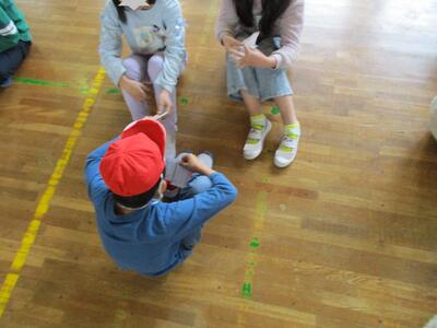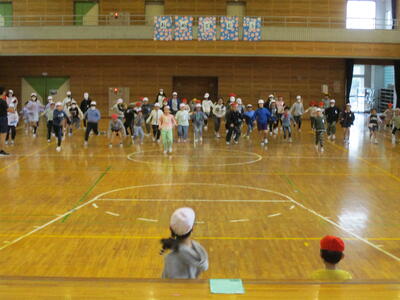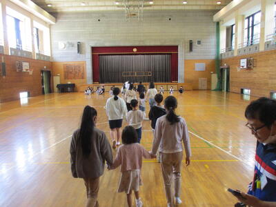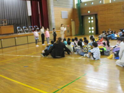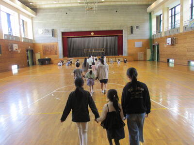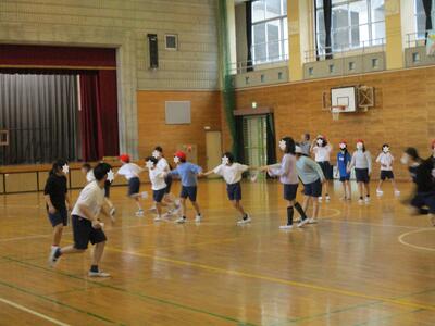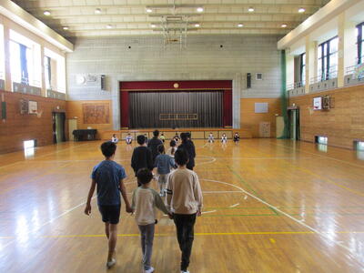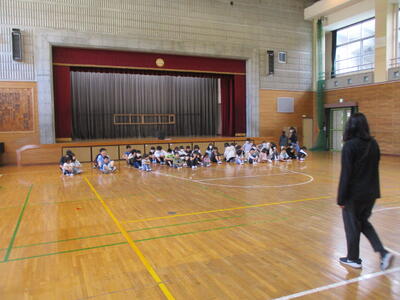 今日は顔合わせの会です。1時間目は2・5年生、3時間目は1・6年生、4時間目は3・4年生です。どの学年も最初は緊張の面持ちでしたが、一緒に体を動かすうちに表情がほぐれ、楽しく活動できました。いろいろな場面で交流することがあるので仲良く過ごしてくださいね。