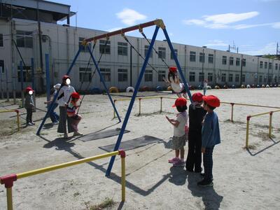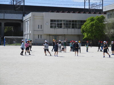 率先して1年生と一緒に遊ぶ6年生。頼もしいです。クラス全体でドッジボールをしたり鬼ごっこをしたりしています。遊具で遊んでいる子もいます。今日も暑いので汗をかきます。汗の始末もしっかり行うようにしていきます。