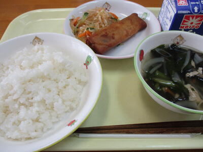 ごはん はるまき はるさめサラダ 中華スープ 牛乳