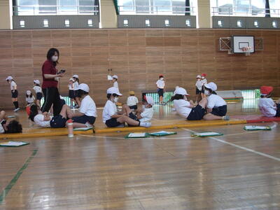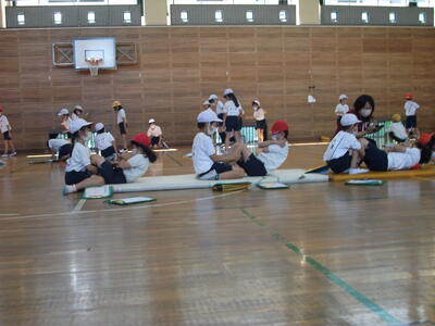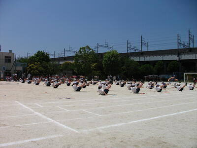 今日も晴れて、気温は上昇しています。運動会は終わりました。次は体力テストです。3年生が、上体起こしと、反復横跳びに挑戦しています。