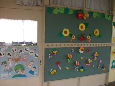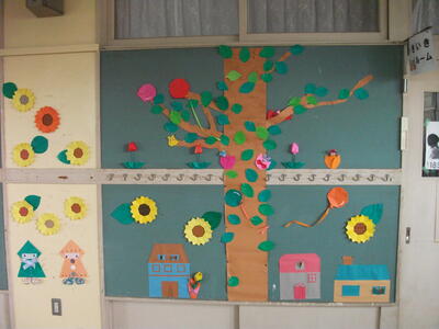 2階のいきいきルームの廊下壁面掲示にホッと癒されます。