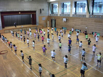 運動会でラジオ体操のお手本になるため、練習をしています。