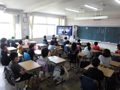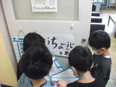 表彰された児童と応援団の2名は校長室で朝会に参加しました。