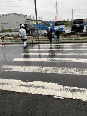 また、朝から雨が降っていました。今日も原木交番のお巡りさんが、朝の交通安全の見回りに来てくれました。お巡りさんは「いろいろな学校の見回りに行くけれど、あまりあいさつを返してくれない子が多い学校もあるんですよね。二俣小はほとんどの子がが元気にあいさつをしてくれてとってもうれしいです」と言っていました。さすがです。