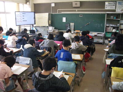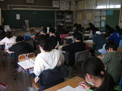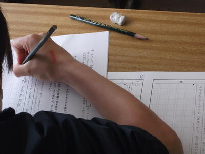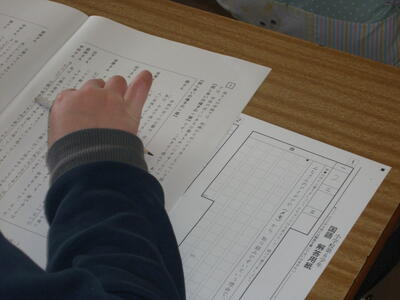 1時間目の国語の様子です。記述式の問題も多く、苦戦している子も見られます。