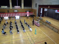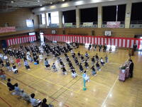 式の中では、6年生が校歌を歌い、2年生が1年間の学校生活でできるようになったことを発表したり、歓迎の言葉を述べたりしました。