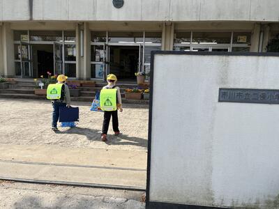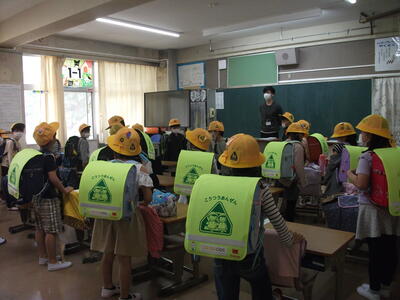 下校はコース別に先生たちが途中まで送っていきます。ランドセルを背負っての登下校は体力を使います。しっかり食べて、しっかり眠って、また明日も元気に登校してくださいね。