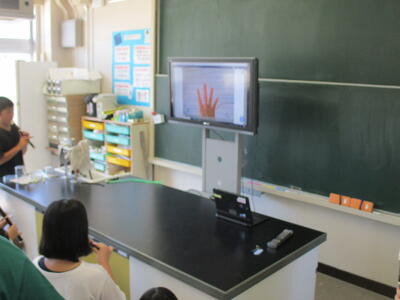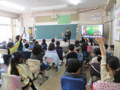 4時間目、2年生は自然博物館の学芸員の方にお越しいただき、生き物についての話をうかがいました。多くの映像をもとに、自然の生き物について詳しい説明をしていただきました。生き物の知識が増しました。