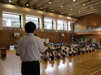 合同のあとは、二俣小だけの夏休みをむかえる会を行いました。改めて、夏休みに向けて気を付けることの話を聞き、表彰を行いました。今回は「市川市健歯児童」「よい歯コンクール8020運動普及標語」の表彰です。6年生の3人が賞状うを受け取りました。