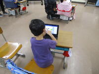 3年生は、タブレットを使って、お店で質問したいことの確認を行っています。素早く準備して、ログインして…。さすが3年生、自分たちで手際よく行えるようになってきました。