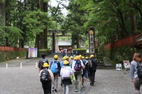 修学旅行も2日目になりました。朝は雨が止まず、湯の湖への散歩は中止。朝食後、食堂での退館式を行いました。バスで湯の湖を出発して、戦場ヶ原に差しかかると大きな虹が見えました。何かいいことありそう…。竜頭の滝、華厳の滝を見学し、いろは坂を下り東照宮周辺の散策です。広い境内をたくさん歩きました。昼食、おみやげを買い一路市川へ。(バスの中はとても静かでした。みんな夢の中ですね。)道路がすいていたため、一時間ほど早い到着となりました。あっという間でしたが素敵な思い出になってくれたかな。学習のまとめもしっかり行っていきましょうね。火曜日、また元気に登校してください\(^o^)/。