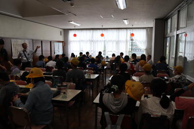 帰校は渋滞のため、30分ほど遅くなりました。また、小雨まじりだったため、到着式は体育館で行いました。体育館を空けていただいた二俣MBCの皆様に感謝です。