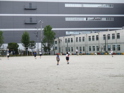 率先して1年生と一緒に遊ぶ6年生。頼もしいです。クラス全体でドッジボールをしたり鬼ごっこをしたりしています。遊具で遊んでいる子もいます。今日も暑いので汗をかきます。汗の始末もしっかり行うようにしていきます。