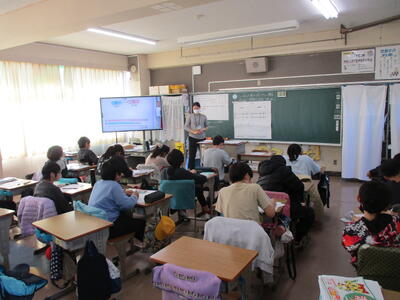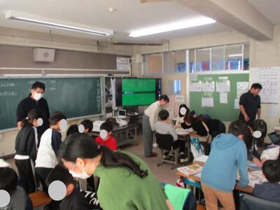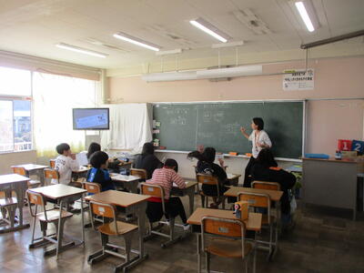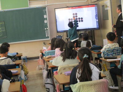 5年生…今日から「割合」の学習です。5年生全員が4つに分かれて、少人数での学習を行います。担任とは違う先生の授業を受けることもあります。いろいろな先生の授業を経験することも目標の一つです。