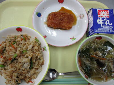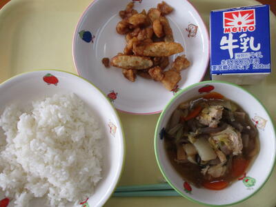 ごはん チキンチキンごぼう ちゃんこ汁 牛乳
