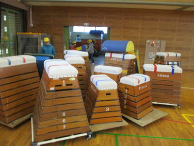 運動委員会…体育用具が使いやすいように体育館の倉庫の片づけをしています。