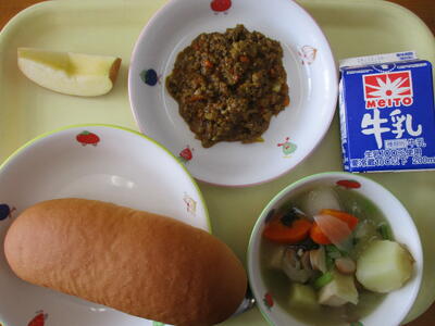 コッペパン ドライカレー 冬野菜のポトフ リンゴ 牛乳